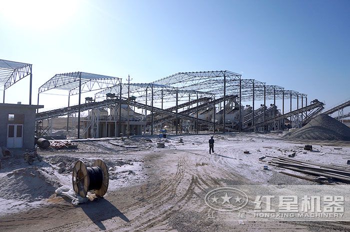 小型規模石子廠配置的生產線施工現場視頻