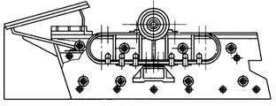 國產慣性振動篩有SZ型和SXG型等型號。圖為SZ型慣性振動篩外形圖。篩網固定在篩箱上,篩箱安裝在兩橢圓形板簧組上,板簧組底座與基礎固定。振動器的兩個滾動軸承固定在篩箱上,振動器主軸的兩端裝有偏重輪,調節重塊在偏重輪上不同的位置,可以得到不同的慣性力,從而調整篩子的振幅。安裝在固定機座上的電動機,通過三角皮帶輪帶動主軸旋轉,因此篩子產生振動。篩子中部的運動軌跡為圓,因板簧的作用篩子兩端運動軌跡為橢圓。根據生產量和篩分效率不同的要求,篩于可安裝在15°-25°傾斜的基礎上。